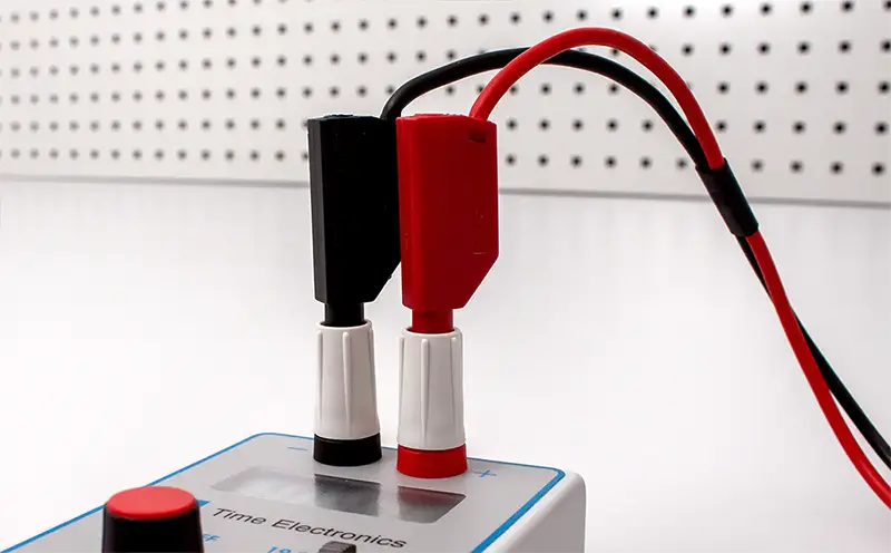 The 1044 connections are via safety terminals that are compatible with 4 mm shrouded plugs, standard plugs, bare wires, and spade terminals.