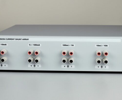 A set of 4 shunts with dedicated current input and voltage sense inputs, with 1 year stability of up to 5ppm, and temperature coefficients of less than 0.6ppm/°C. High precision current sensing foil resistors provide unmatched self heating effects without requiring immersion in oil baths.