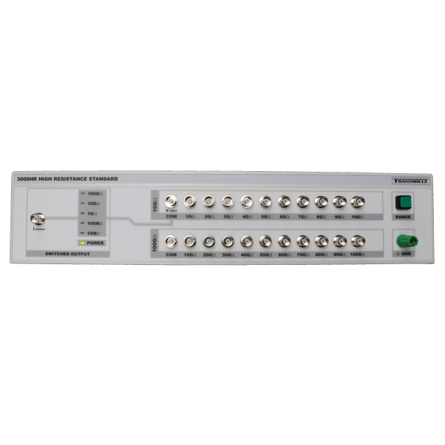 The 3000HR provides a traceable source for high voltage resistance, consisting of a buildup box of 1 GOhm and 10 Gohm resistors, allowing a buildup to 100 Gohm.