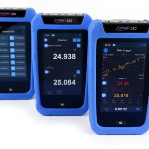 Additel’s 282 Reference Thermometer Readout delivers the best possible accuracies and features in the palm of your hand! With accuracy capabilities on par with laboratory grade thermometers, the ADT282 is capable of handling even your most critical measurements. This ultra-high precision readout features dual analog channels designed to facilitate comparison measurements and meet all of your temperature measurement needs. The easy to use touchscreen makes navigating the well-designed menus a time saving and enjoyable experience. The Lemo style smart connectors help to ensure that your probe calibration information is never in question. The ADT282 Reference Thermometer Readout helps makes metrology simple and will quickly become your new go-to when reliable temperature measurements are a must.