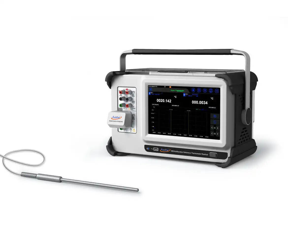 The Additel 286 Multifunction Reference Thermometer Readout is an industry first! We have combined the capabilities of a high-end reference thermometer with a highly capable data acquisition system and 8.5 digit multimeter. The ADT286 is capable of scanning and recording up to 82 channels at 10 channels per second. Users can easily configure the ADT286 to perform field calibrations and uniformity studies as well as use the unit in the lab as a precision thermometer and 8.5 digit multimeter. Get more for less with this newest game changer from Additel!