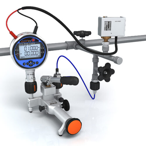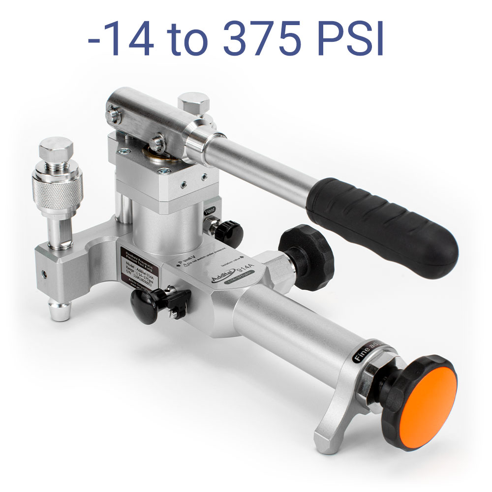 The 914A Pneumatic Pressure Test Pump is a hand operated pressure pump designed to generate pressure from 95% vacuum to 375psi (25bar). A high-quality screw press is designed for fine pressure adjustment, with an adjustment resolution up to10 Pa (0.1 mbar). A specially designed shut-off valve makes the pressure as stable as possible during calibration. A built-in gas-liquid isolator protects the pump from moisture and dirt to reduce the need for maintenance. Two hand-tight quick connectors installed on the pump allow easy connecting and disconnecting to the test pump without the need for PTFE tape or wrenches. The 914A is an ideal comparison test pump for pressure instruments calibration.