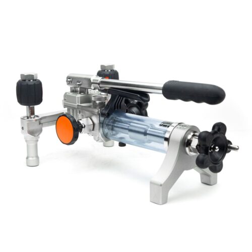 The 920 and 920HV High Pressure Test Pumps are hand operated pressure pumps designed to generate pressure from 95% vacuum to 3,000psi (200bar). With a long lever, it just takes 40 seconds to reach 3,000 psi (200 bar). A high-quality screw press is designed for fine pressure adjustment, with an adjustment resolution up to 10 Pa (0.1 mbar). A specially designed shut-off valve makes the pressure as stable as possible during calibration. A built-in gas-liquid isolator protects the pump from moisture and dirt to reduce the need for maintenance. The residual liquid in the pump introduced from devices under test will be pushed out and collected during pressure release. Two hand-tight quick connectors installed on the pump allow easy connecting and disconnecting to the test pump without the need for PTFE tape or wrenches. The 920 and 920HV are ideal comparison test pumps for pressure instrument calibrations.