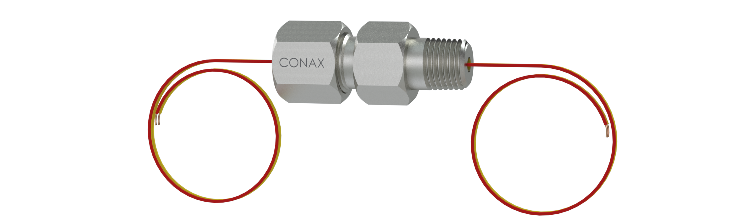 This assembly consists of a Conax Technologies manufactured TG Feedthrough provided with a sealant and 24 AWG solid insulated thermocouple grade wires or copper wires. The feedthrough is furnished with 24″ of wire on each side. Longer wire lengths can be furnished as required.