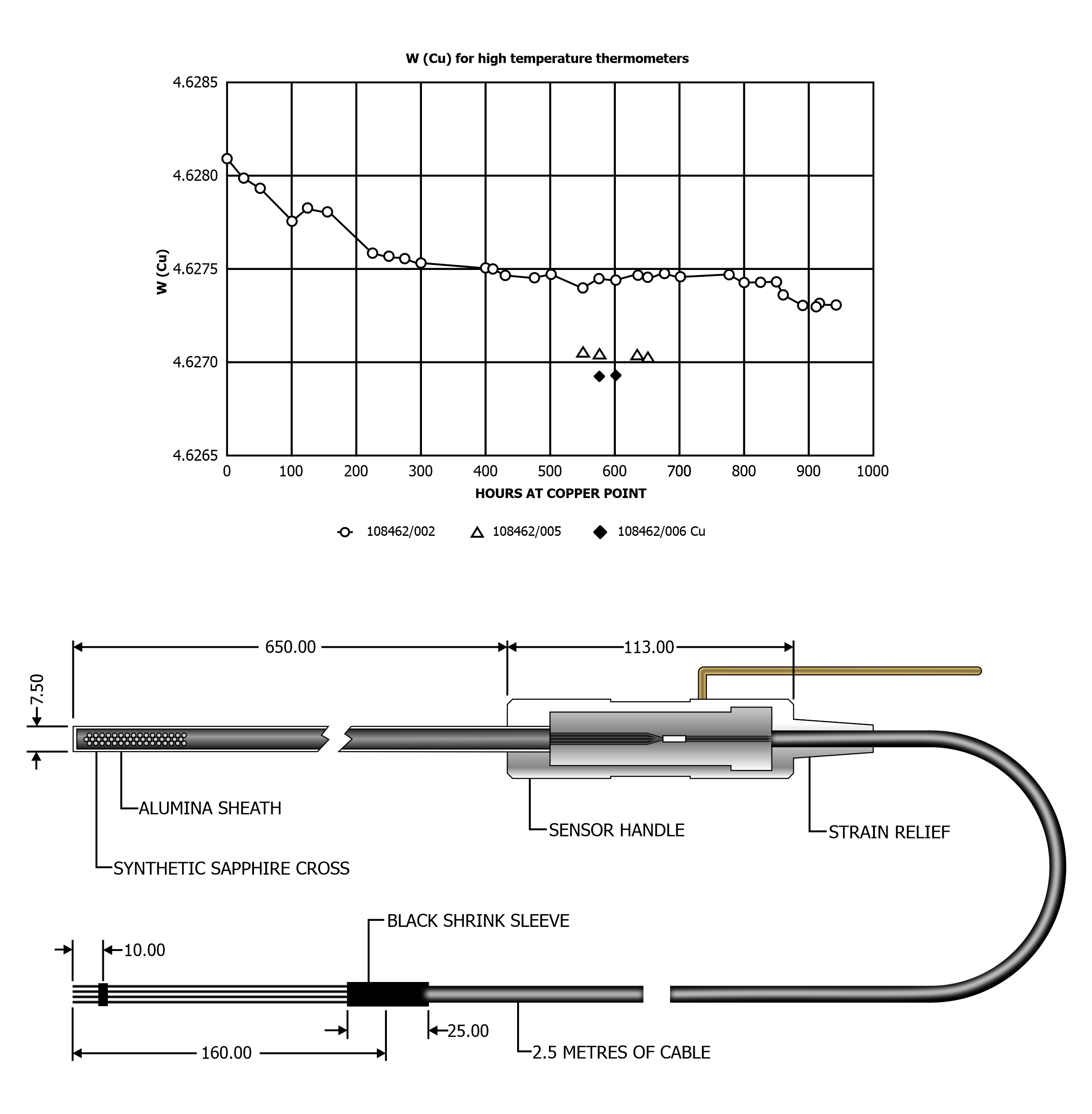 Isotech has a long history of making SPRTs to the Silver point (Model 96178) and this experience was combined with new research to produce the new copper point SPRT (Model 108462).