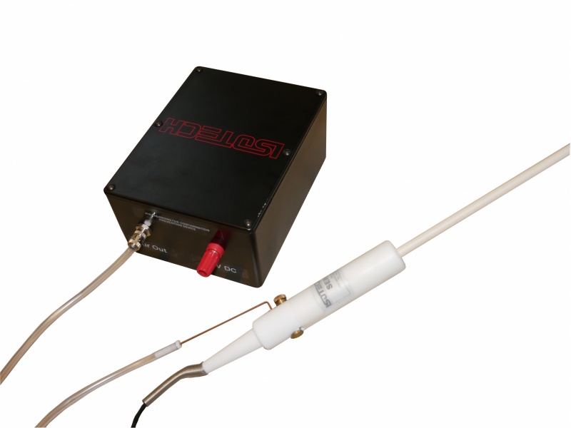 The four platinum lead wires are separated with tubes of quartz glass and passed through four bores. In use the winding is biased to +9V DC with the included ioniser.