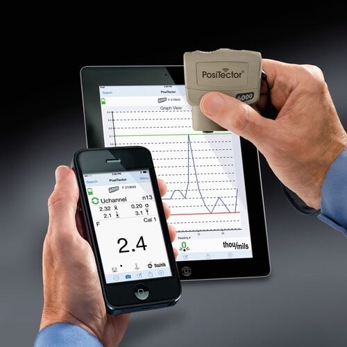 PosiTector SmartLink and free mobile app turns your cell phone or tablet into a virtual PosiTector gage. Take full advantage of the simplicity and utility of your smart device including touch screen, keyboard, microphone, camera, email, WiFi, Bluetooth, cellular, dictation tools, and more.