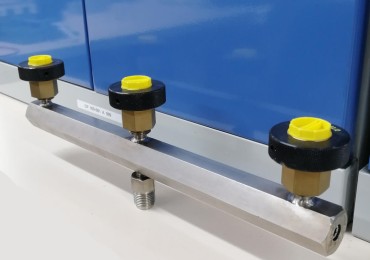 This accessory allows you to save time! We have developed this control cube to allow you to calibrate 3 manometers at the same time. It has a compact and robust design, and is equipped with 3 interchangeable connectors (to choose from among our 17 standard connectors). The gap allows you to connect pressure gauges up to diameter 150.